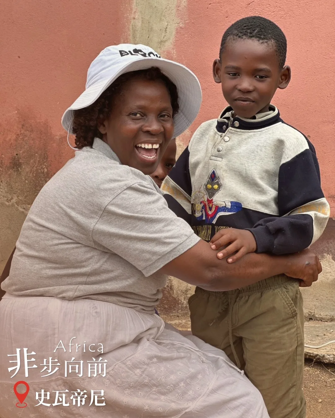 盧顏歐社區的本土志工擁抱著自己的小孩。在史瓦帝尼,步調緩慢,人民需要學習自力更生的方法,慈濟推動的大愛農場栽種計畫,可以促進鄉親學習栽種技巧,自力更生。