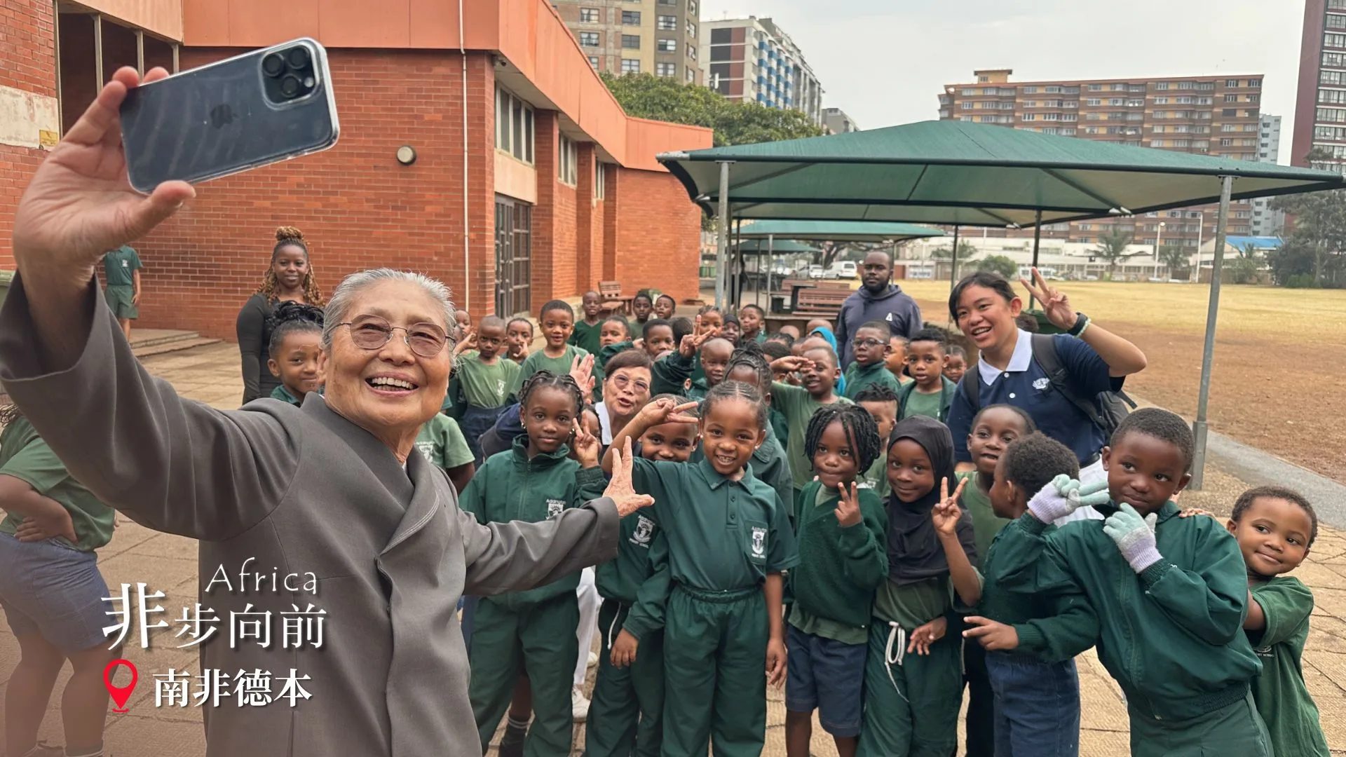 愛丁頓小學與慈濟合作 25 年品德教育,孩子們活潑有禮,十分可愛。慈濟基金會副總執行長林靜憪忍不住和他們一起自拍。