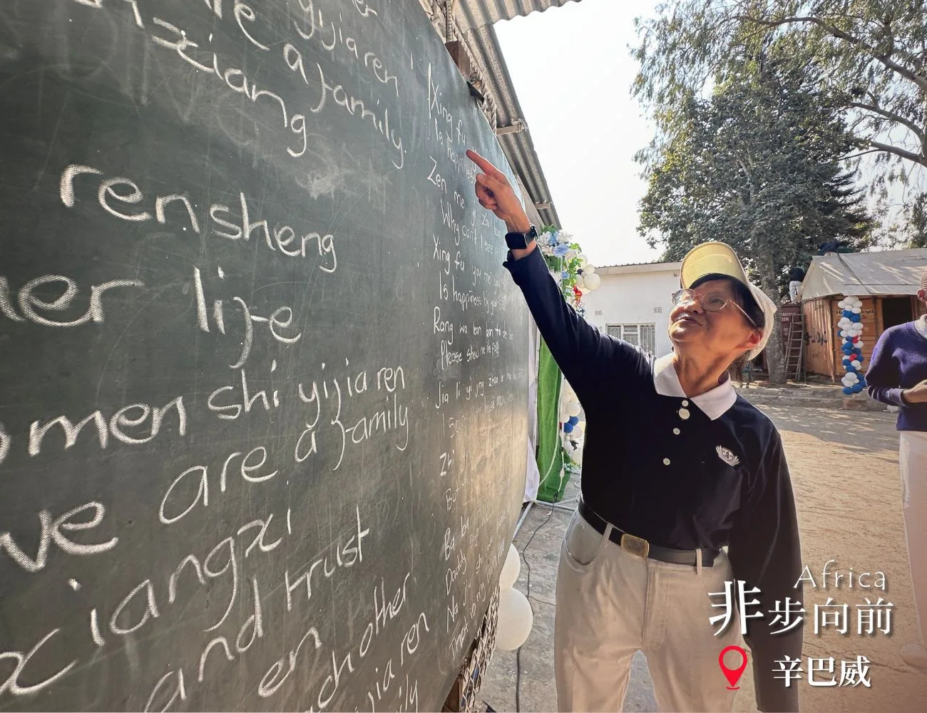 她將中文歌詞以羅馬拼音的方式寫在黑板上,輔以英文歌詞翻譯,幫助本土志工心領神會。她說,辛巴威本土志工都很有天分,學唱幾次就能很快掌握旋律。