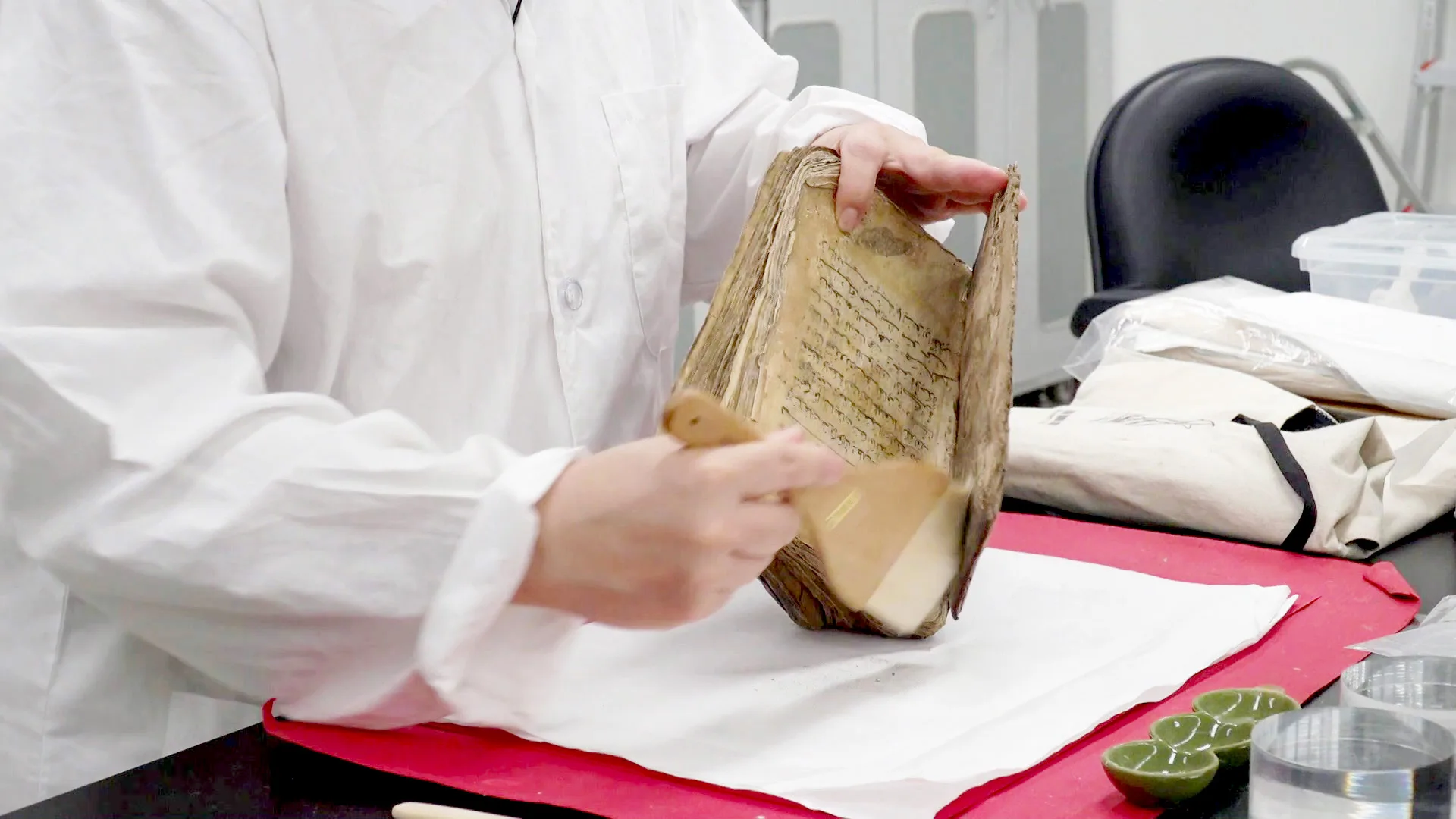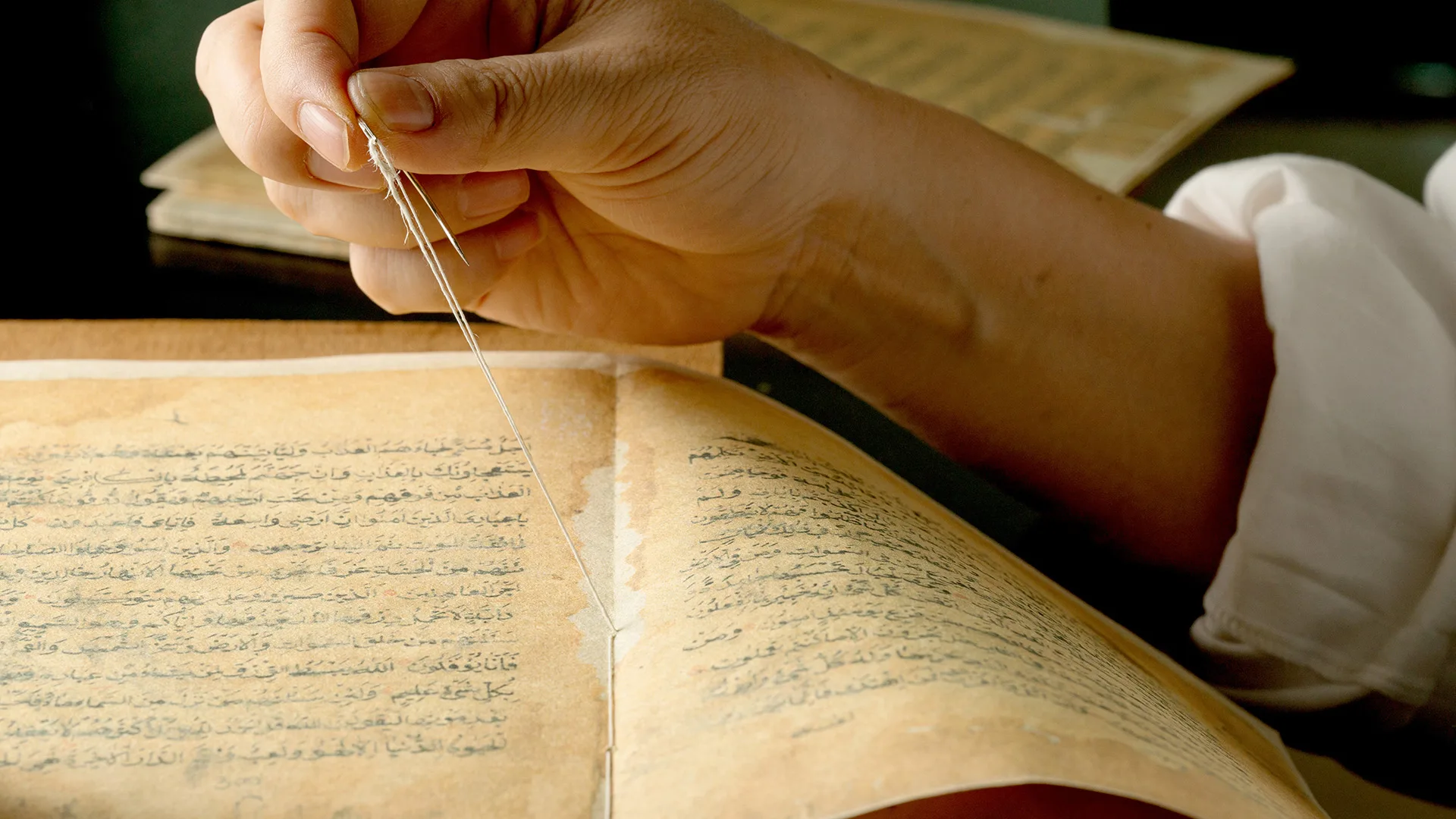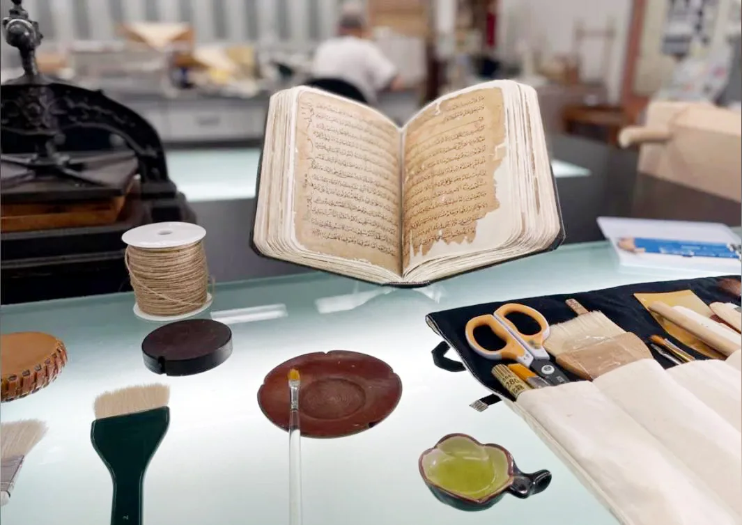 就在徐美文感到無助之時,彷彿獲得古蘭經的指引般,讓她找到一種美國最新的技術,以紙張製作新的外殼,再黏回舊有封面,還原這本五百年歷史古蘭經的本來面目。