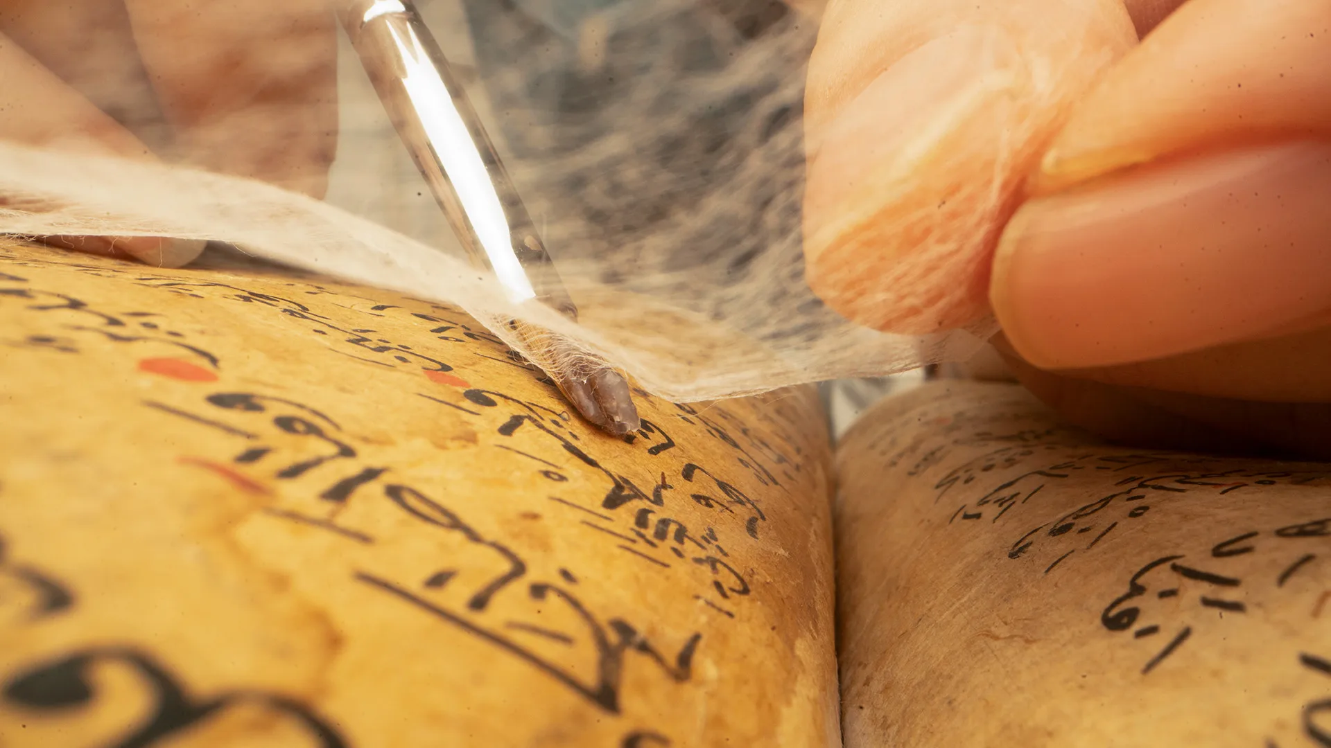 完成耐心的清潔過程後,徐美文開始尋找修補書頁的合適紙張,過程超乎想像的不順利。「最大的困難是紙張,15、16 世紀阿拉伯世界製造紙張的原料,應該是麻跟棉的成分比較多,跟我們現在的很不一樣。」