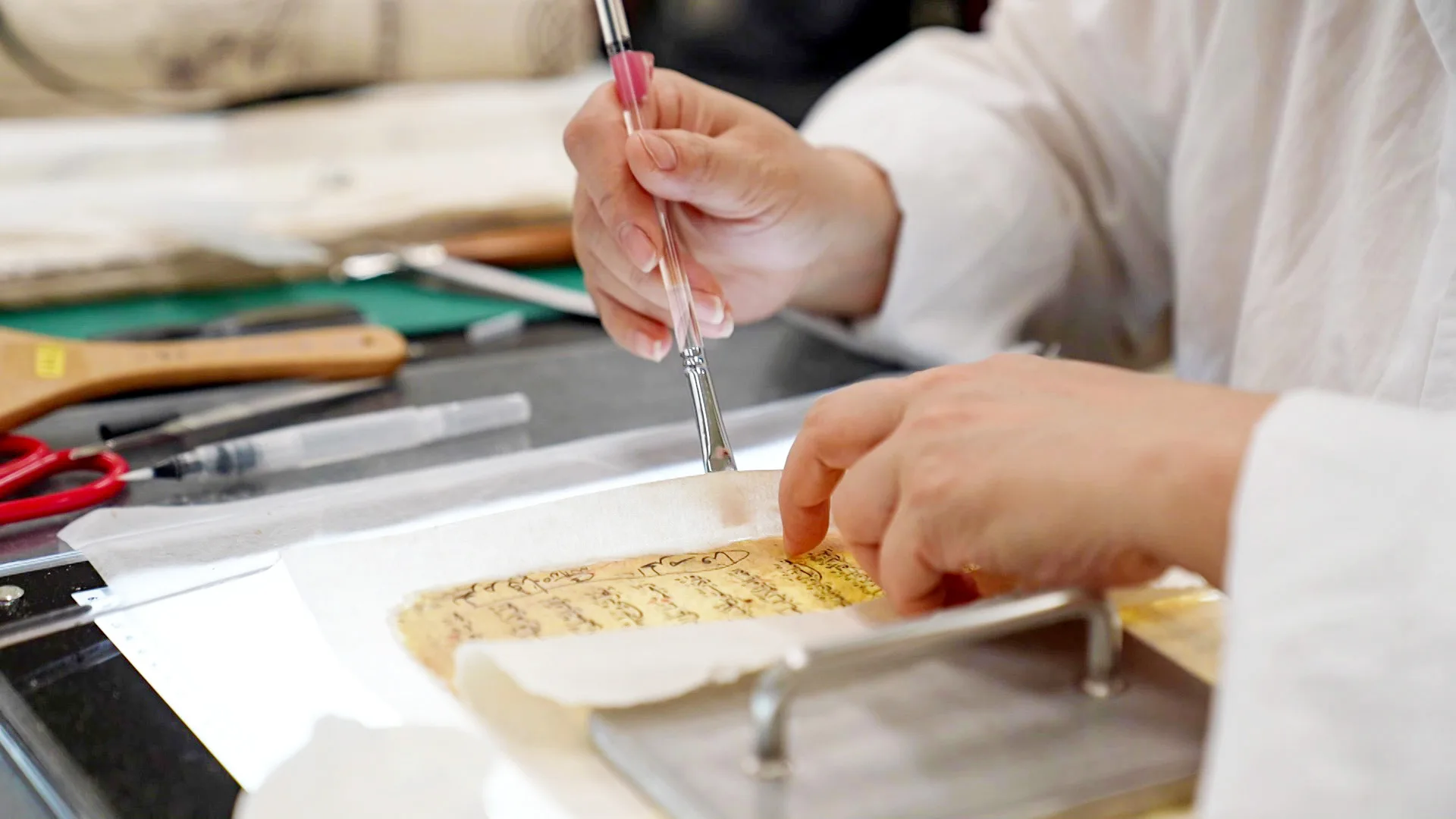 為了保護文字,徐美文使用日本製薄如蟬翼的修復紙「典具帖」,貼合在古蘭經書頁。為了避免字體因為膠的水份暈開,徐美文用擰乾的棉布慢慢推、滾、壓,這是圖書醫院首次,也是全臺第一個使用的書頁修復方式。