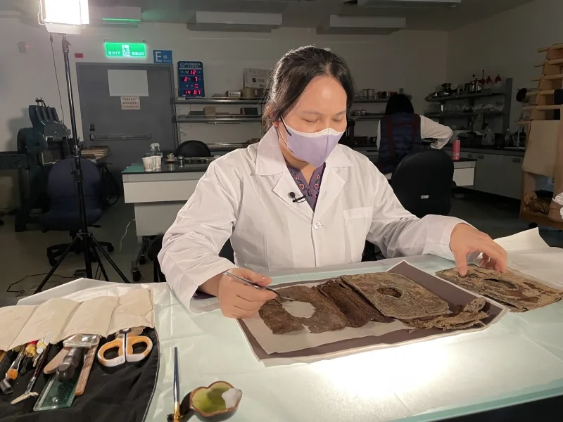 接下來正式展開修復工作。修復古書,每本書況不同,修復師憑著專業知識、經驗與實驗家的精神,每一本書的修復,都有還原它本來面目的獨特旅程。因為沒有標準作業流程,因此徐美文堅持最少干預,保留原貌的原則:「拆完書之後,要還原成最接近它原來的面貌。」